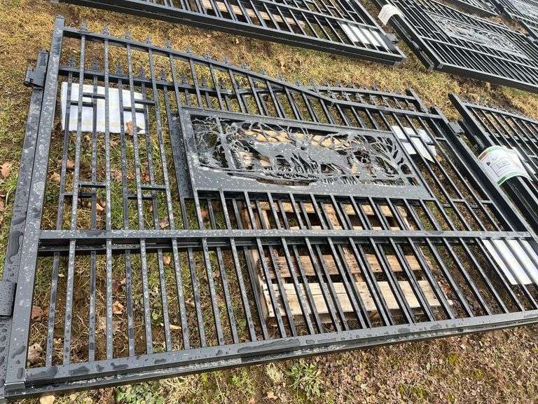 Unused 20 ft Bi-Parting Wrought Iron Gate - One of the decorative points on the top of the gate is broken off