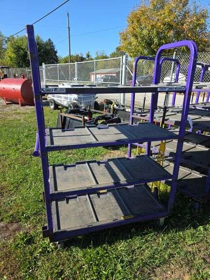 Lots 9199 - 9216 Are all exactly the same. They are heavy duty rolling racks and the top shelf tilts for display. They also will all link together.