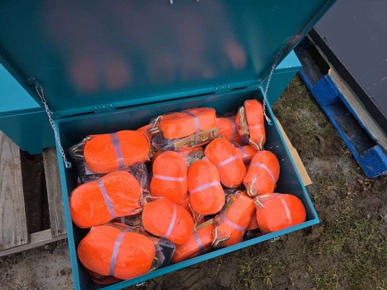 Specification:W2in*L27ft-5T Ratchet (QTY of 16) & W1.5in*L27ft-3T Ratchet (QTY of 8) & Flatpack Tool Box